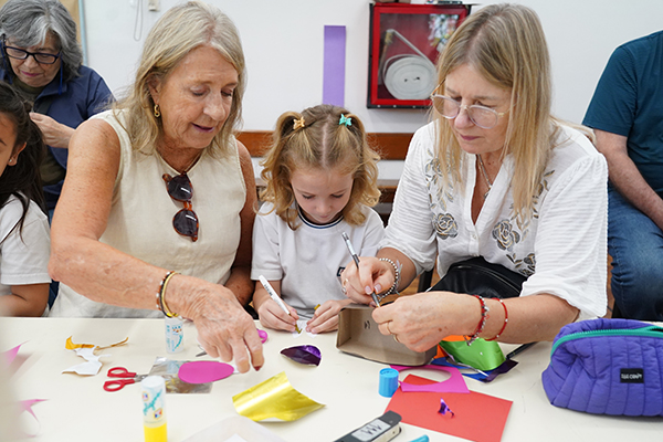 En cada encuentro, nietos y nietas junto a sus abuelos y abuelas llenaron el SUM de alegría, sonrisas y abrazos. Se destacó un hermoso despliegue de creatividad e imaginación, reflejado en la singularidad de cada una de las canastas.
