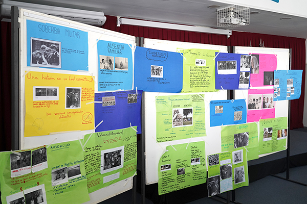 El cierre estuvo a cargo de dos paneles de intercambio en los que participaron hijas de desaparecidos (quienes son madres de estudiantes de nuestra comunidad educativa), escritoras y fotógrafas, quienes nos acercaron sus experiencias y dialogaron con los y las estudiantes sobre nuestra historia reciente.