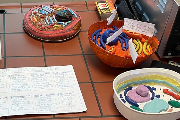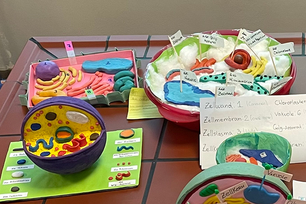 En el marco de las clases de Biología en alemán, los tres cursos de cuarto año junto con sus docentes András Horváth, Marco Kadi y Natalia Ehrenhaus aplicaron lo aprendido teóricamente sobre células en un trabajo práctico. En grupos, construyeron modelos celulares que tuvieron en cuenta todas las características que debe tener una célula.
